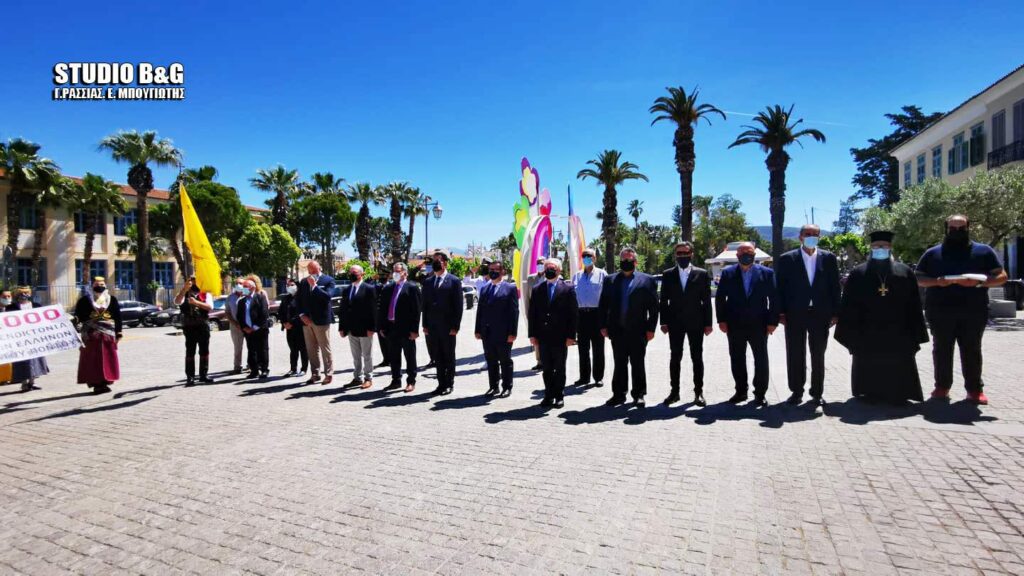 Η εκδήλωση ολοκληρώθηκε με κατάθεση στεφάνων στο Μνημείο του Δημητρίου Υψηλάντη στην Πλατεία Δημαρχείου, από τις πολιτικές και στρατιωτικές αρχές του τόπου και της Πρόεδρου του Συλλόγου Ποντίων Αργολίδας «Παναγία Σουμελά»