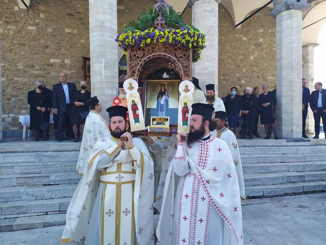 Ὁ Σεβασμιώτατος κατά τήν Ἀπόλυσιν χειροθέτησε τόν Ἐφημέριο τῆς ἐνορίας π. Πέτρο Δικαῖο σέ Πρωτοπρεσβύτερο καί τόν Πρωτοπρεσβύτερο π. Παναγιώτη Ἀσκούνη σέ Πνευματικό Ἐξομολόγο.Ἀναφερόμενος στούς δύο ἱερείς, τούς προέτρεψε ἡ τιμή πού τούς ἔδωσε ἡ Ἐκκλησία, νά γίνει διακονία πρός τό ποίμνιο καί νά παραμένουν καθαρά δοχεία τοῦ Ἁγίου Πνεύματος. Στούς παρισταμένους ἄρχοντες καί τόν εὐσεβή λαό εὐχήθηκε νά ἔχουν τήν εὐλογία τοῦ συμπατριώτη μας Ἁγίου Νείλου, ἀλλά καί τήν δυνατή πίστη καί τούς ἀγώνες του. Ἀκολούθησε Λιτάνευση τῆς σεπτῆς Εἰκόνος καί τοῦ ἱεροῦ Λειψάνου τοῦ Ὁσίου ἐντός τοῦ χωριοῦ. Κατά τή διάρκεια τῆς, Κλῆρος καί Λαός ἔγιναν μάρτυρες γιά μία ἀκόμη χρονιά τοῦ θαύματος τῆς ρεύσεως ἁγίου μύρου ἀπό τήν εἰκόνα τοῦ Ὁσίου, γεγονός πού συμβαίνει τίς περισσότερες φορές στή Λιτανεία τῆς μνήμης του.