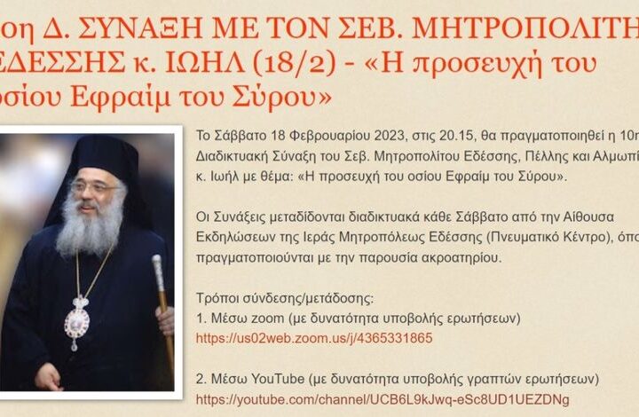 Το Σάββατο 18 Φεβρουαρίου 2023, στις 20.15, θα πραγματοποιηθεί η 10η Διαδικτυακή Σύναξη του...