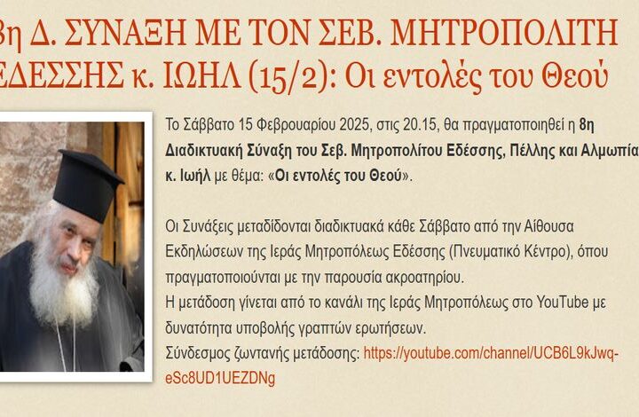 Το Σάββατο 15 Φεβρουαρίου 2025, στις 20.15, θα πραγματοποιηθεί η 8η Διαδικτυακή Σύναξη του...