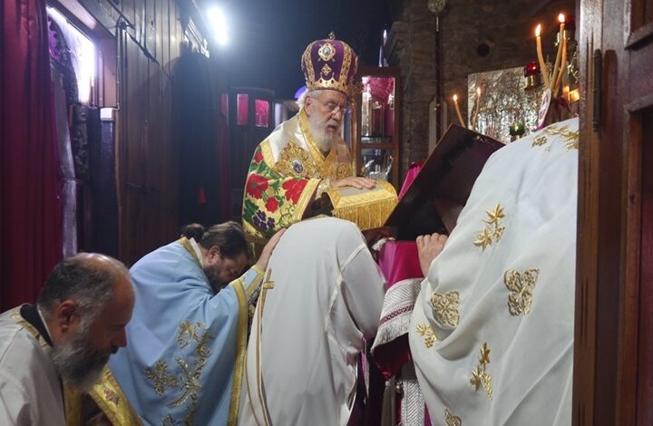 Στον Ιερό Ναό των Αγίων Κωνσταντίνου και Ελένης Μάνδρας Μεγάρων τελέσθηκε απόψε Τρισαρχιερατικός Εσπερινός...