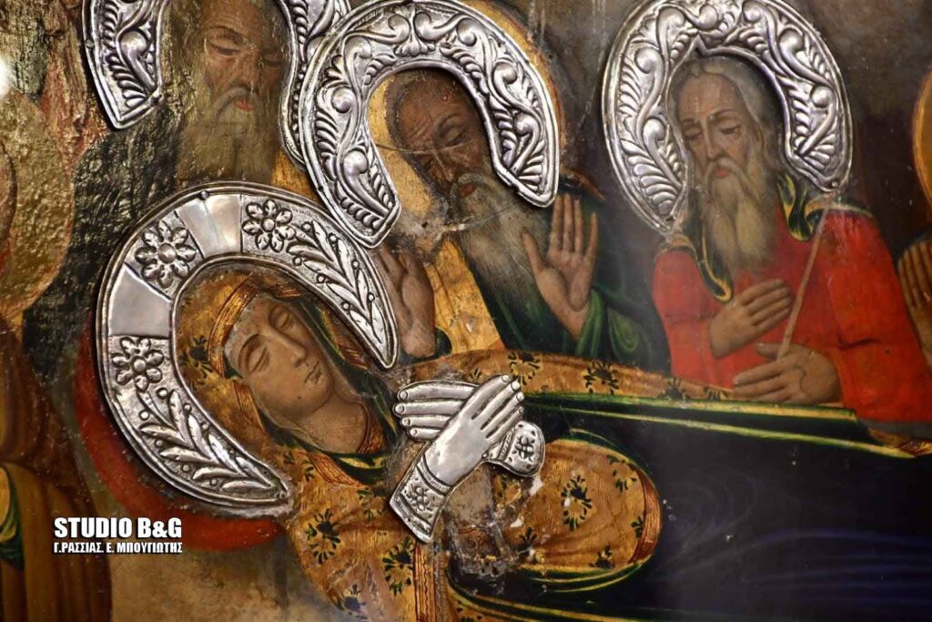 Ο ιερός ναός της Ευαγγελιστρίας Ναυπλίου είναι δισυπόστατος και το ένα κλίτος του είναι αφιερωμένο στην Κοίμηση της Θεοτόκου.